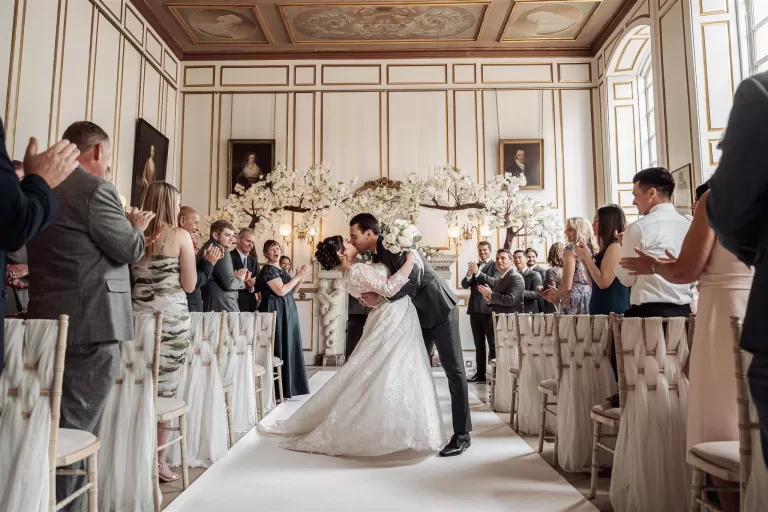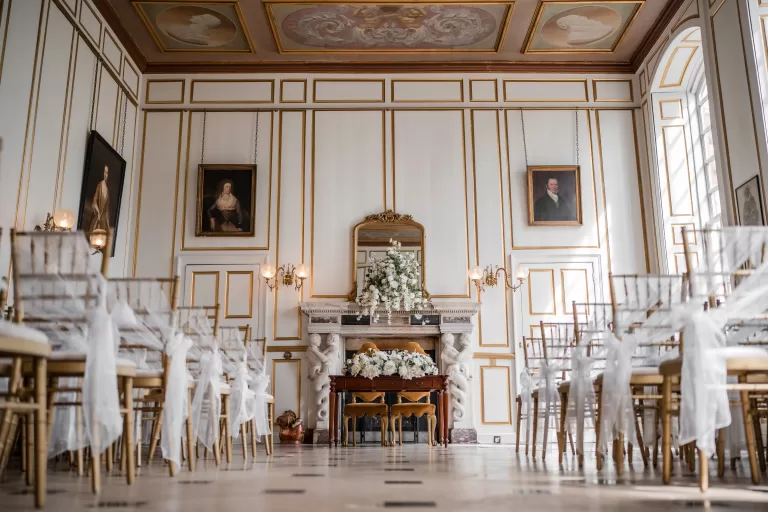 Choose from the oak-panelled aisle of the Queen’s Gallery, the elegant Grand Salon and two garden ceremony spaces.