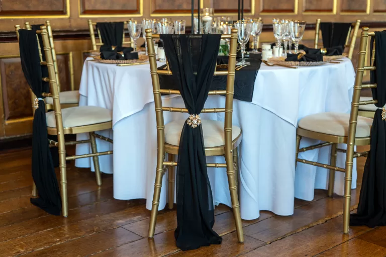 Our beautiful dining room can be styled to suit your theme with tasteful decorations that complement the colour scheme, food and surroundings.