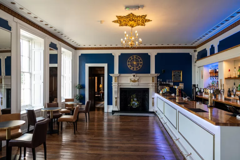 The more intimate Grand Salon is the epitome of graceful Georgian architecture with its tall windows and hand-painted ceiling.