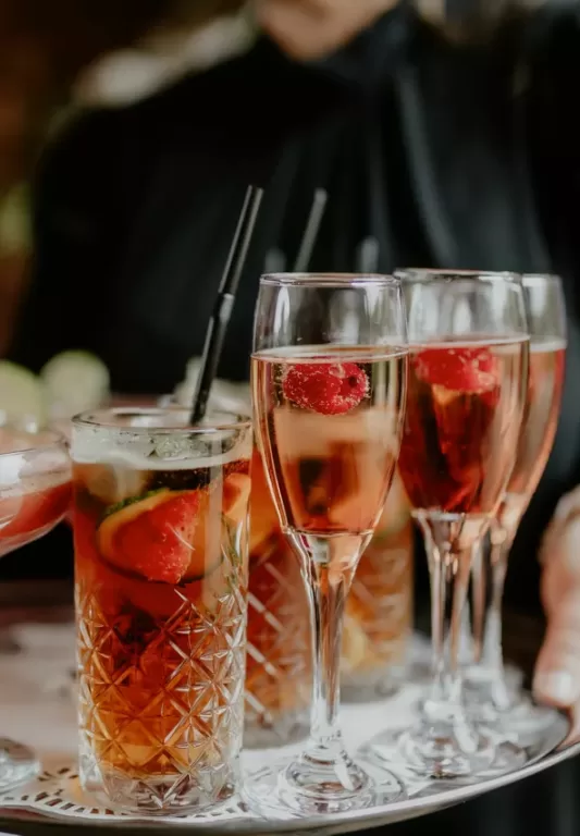 We’ll welcome your guests to Holmewood Hall with a glass of something chilled. Our Classical and Luxe menus offer bubbles, cocktails and refreshing soft drinks.