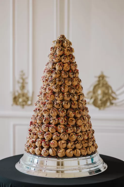 Delight your guests with a donut wall or classic croquembouche – our expert pastry chefs can create this showstopping wedding cake alternative for you.