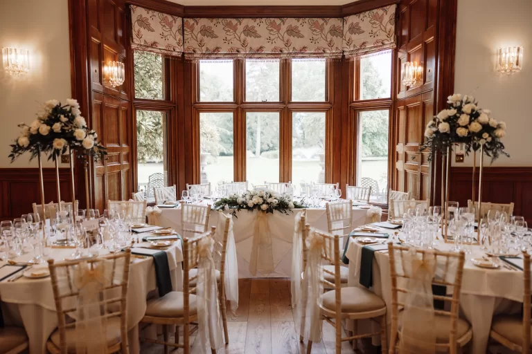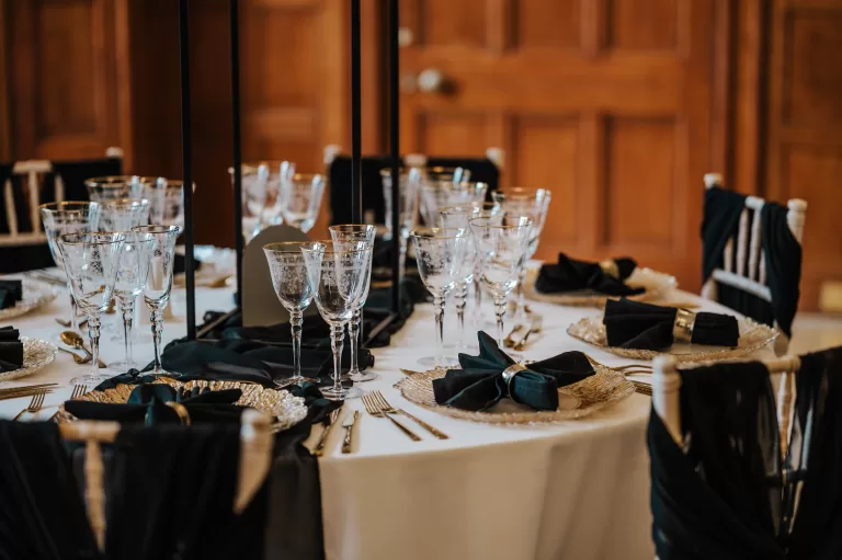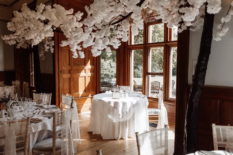 Our beautiful dining room can be styled to suit your theme with tasteful decorations that complement the colour scheme, food and surroundings.