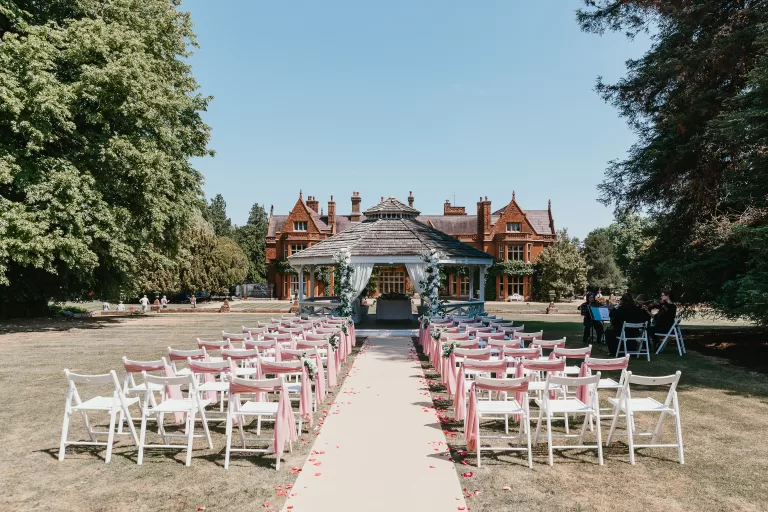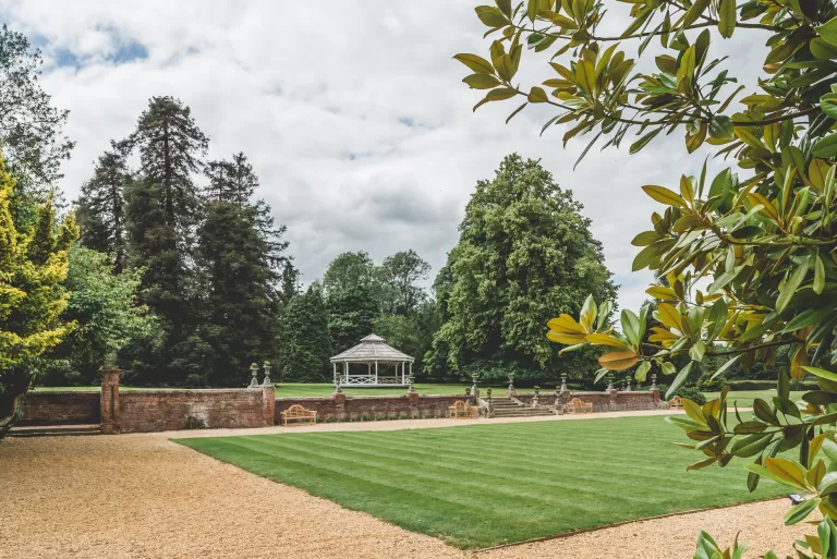 The traditional Bandstand and lawned garden is the perfect place for an outdoor ceremony, and the Hall creates a striking backdrop.