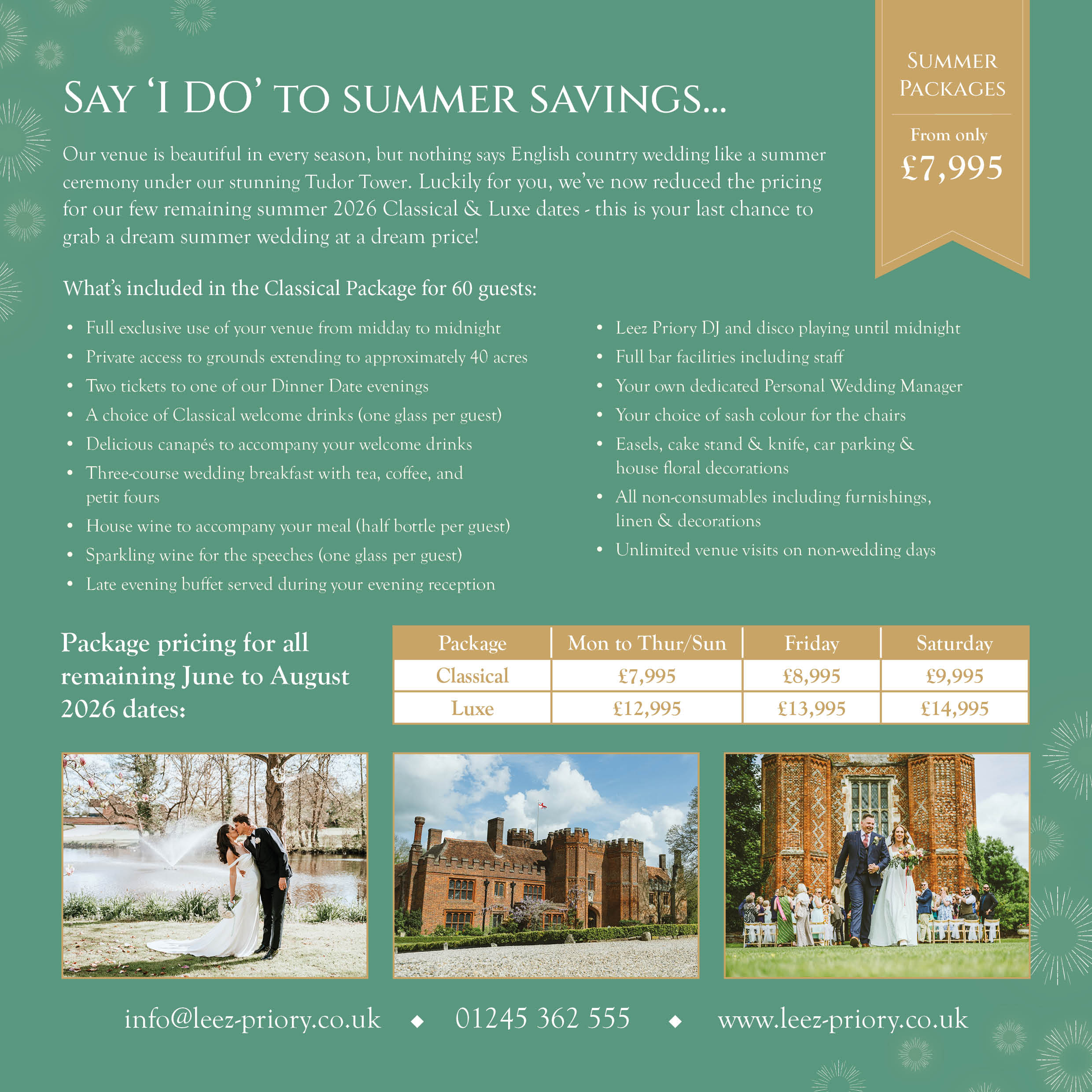 Say ‘I DO’ to Summer Savings with packages from only £7,995