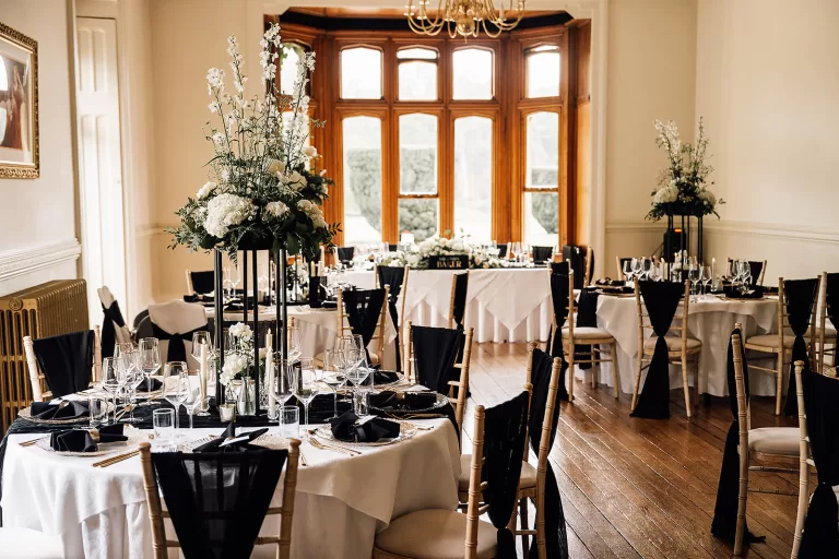 Our beautiful Banqueting Hall can be styled to suit your theme with tasteful decorations that complement the colour scheme, food and surroundings.