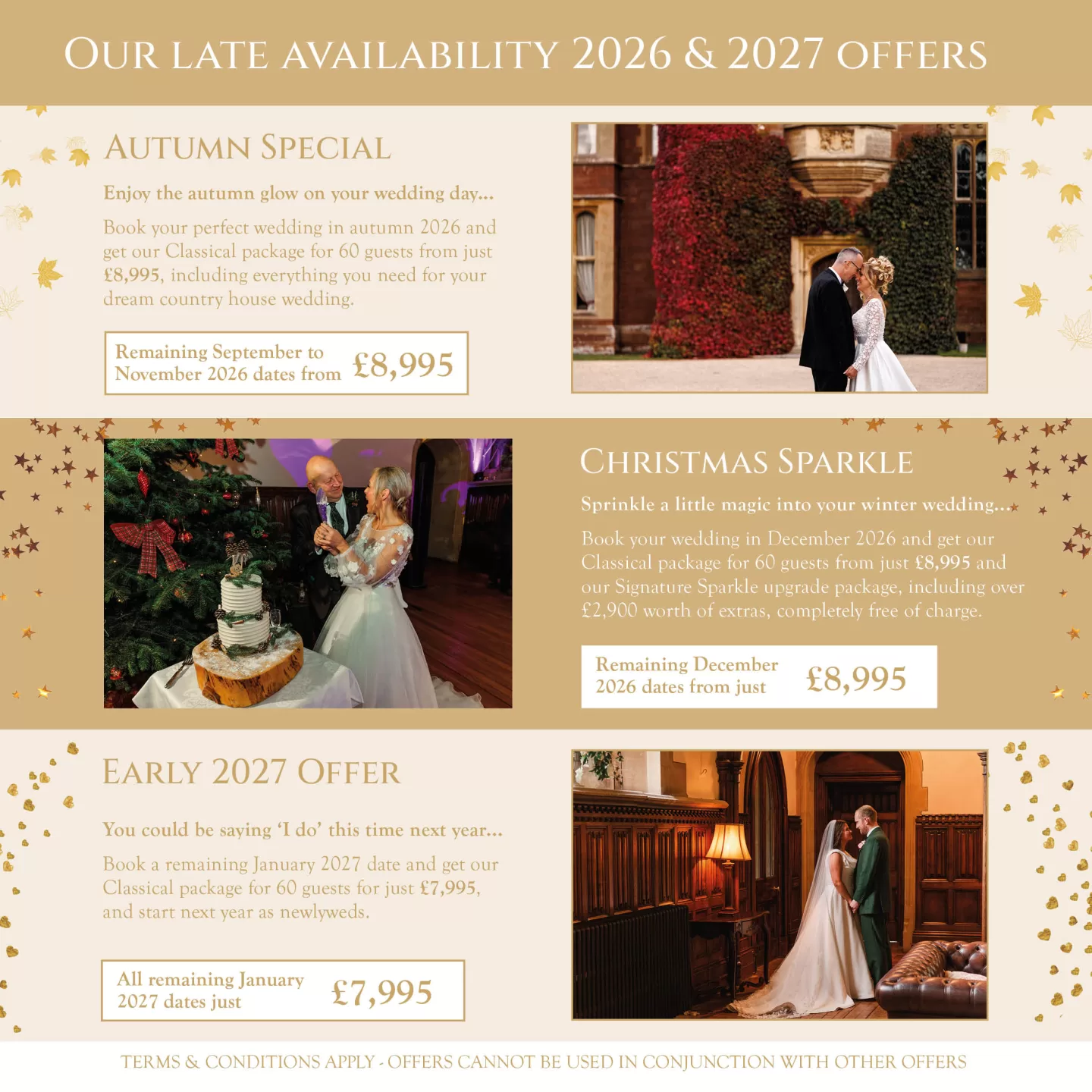 We’ve plenty of experience of hosting weddings. After all, we're part of the UK's longest-running wedding venue group, and we’ve had a license for over 30 years.