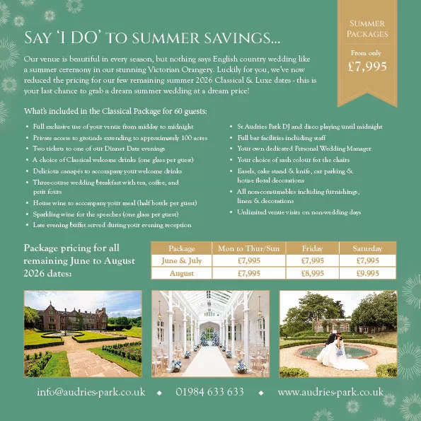 Born from over 30 years’ experience providing dream all-inclusive weddings, this package is the Original and includes everything you need for the perfect wedding day from start to finish.
